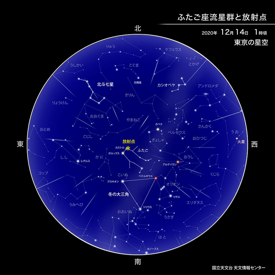 今年の「ふたご座流星群」情報について配信しています。