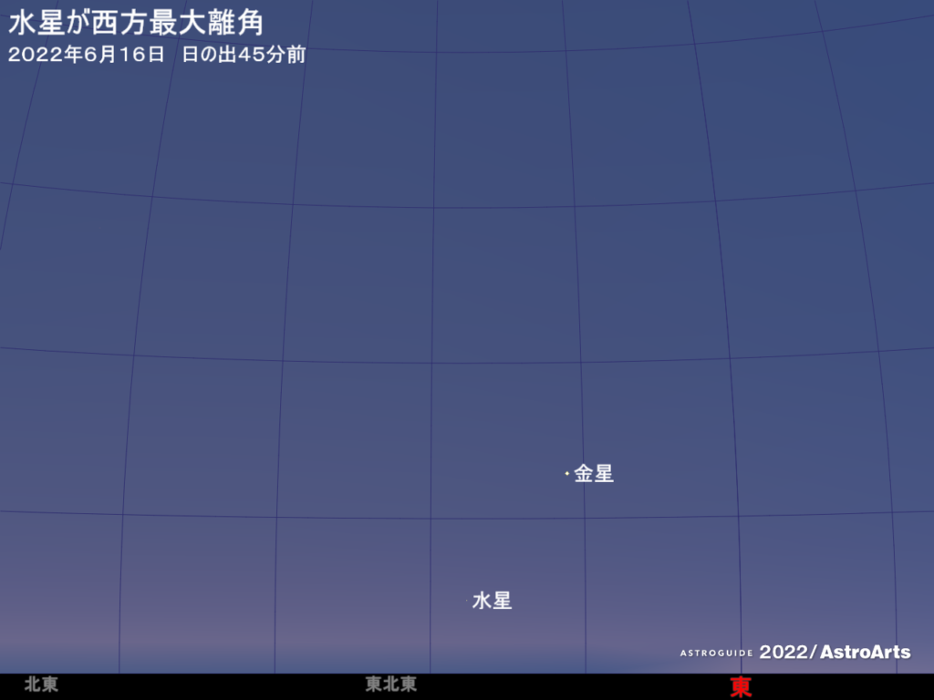 | 6/16 | 水星が西方最大離角 |