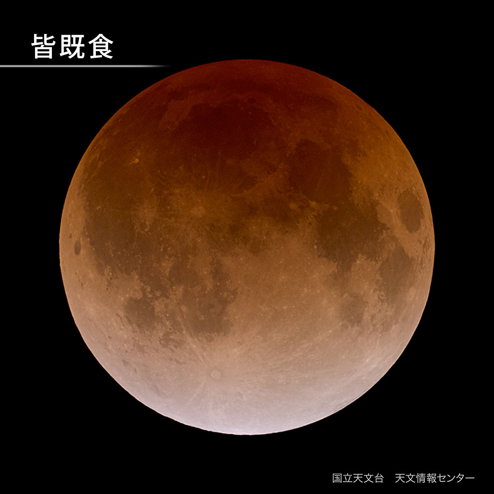 しかし、皆既食中の月は真っ暗になって見えなくなるわけではなく、赤黒い色に見えます