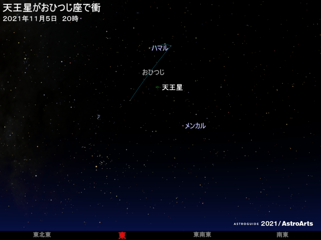 11月5日、天王星がおひつじ座で衝(太陽‐地球‐天王星がまっすぐに並ぶ位置関係)となる。