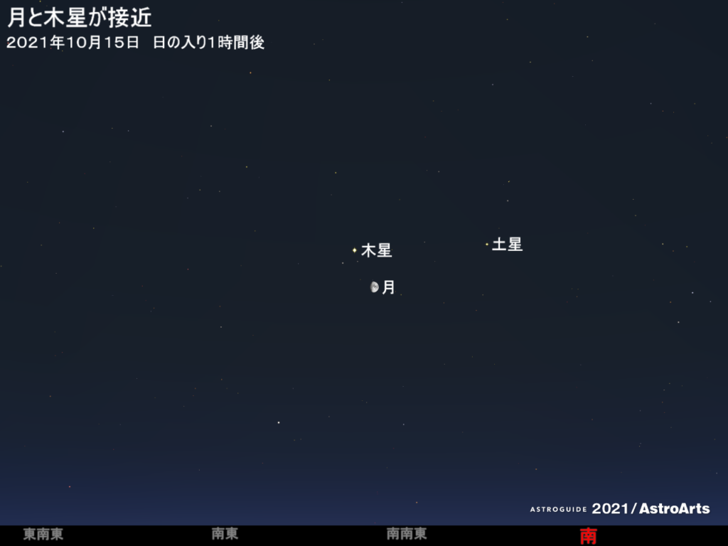 10月15日の夕方から16日の未明、月と木星が接近する。