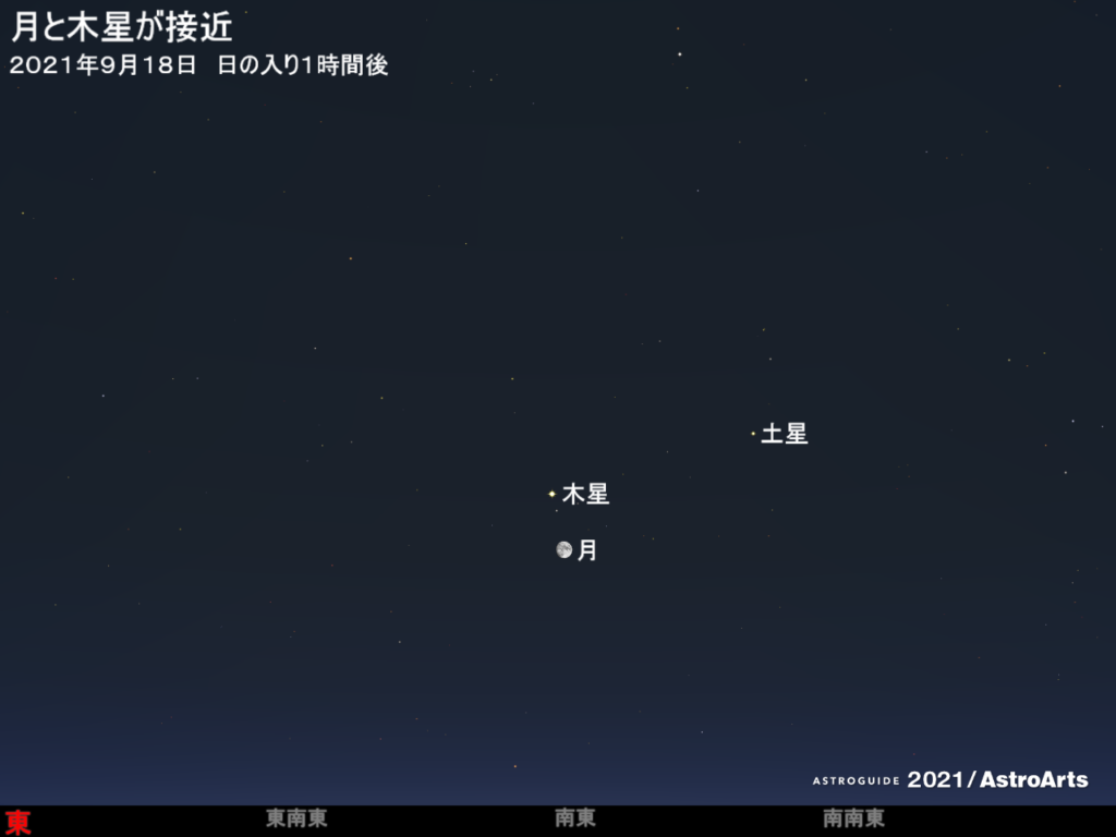 9月18日の夕方から19日の未明、月と木星が接近する。