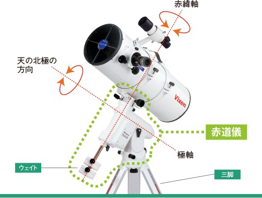 赤道儀は、日周運動(地球の自転)に合わせて星を追うことができます。