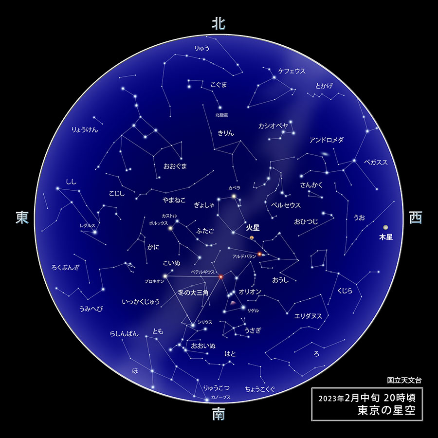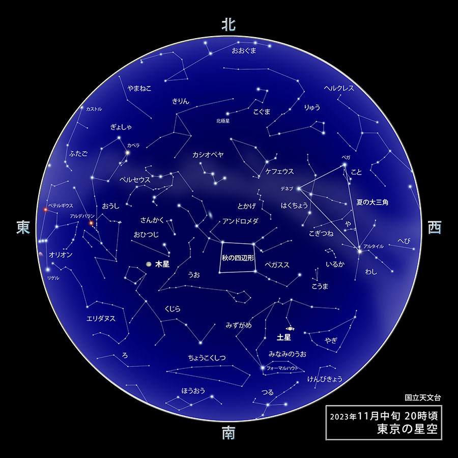 | 2023年11月3日 | 木星がおひつじ座で衝 2023年11月3日、木星がおひつじ座で衝(太陽‐地球‐木星がまっすぐに並ぶ位置関係)となる。 |