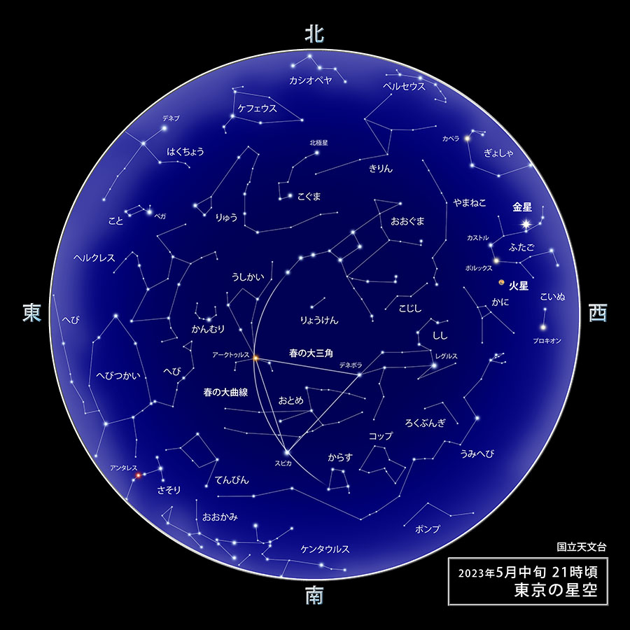 | 2023年5月6日 | みずがめ座η流星群が極大 2023年5月6日、みずがめ座η流星群の活動が極大となる。5月7日の未明から明け方が見ごろ。 |