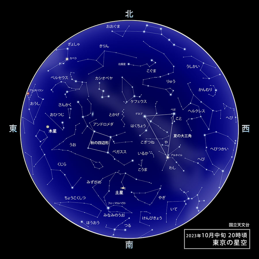 | 2023年8月28日 | 土星がみずがめ座で衝 2023年8月28日、土星がみずがめ座で衝(太陽‐地球‐土星がまっすぐに並ぶ位置関係)となる。 |